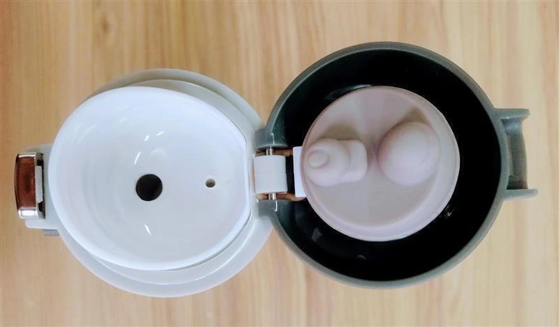 • Garrafa térmica 350ml prata com sistema de trava. Material metálico com revestimento interno em inox, parte inferior com borracha anti deslizante; possui tampa plástica fosca com borracha interna para vedação evitando o vazamento de líquido e prezando sua temperatura; possui botão central para abertura e trava lateral (basta seguir a orientação dos desenhos de cadeados simulando o travamento/destravamento da tampa).